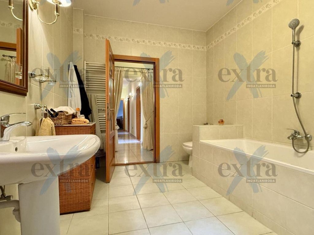 A NAGYMÉRETŰ FÜRDŐSZOBÁBAN KÁD ÉS ZUHANYZÓ is elérhető, ami MINDENNAPI KÉNYELMET jelent nagyobb családok számára. Az emeleten további EGY TELJES ÉRTÉKŰ SZOBÁT, MOSDÓT, MOSÓKONYHÁT és még BE NEM ÉPÍTETT LAKÓRÉSZT is találunk, amely új funkciók kialakítására ad LEHETŐSÉGET.