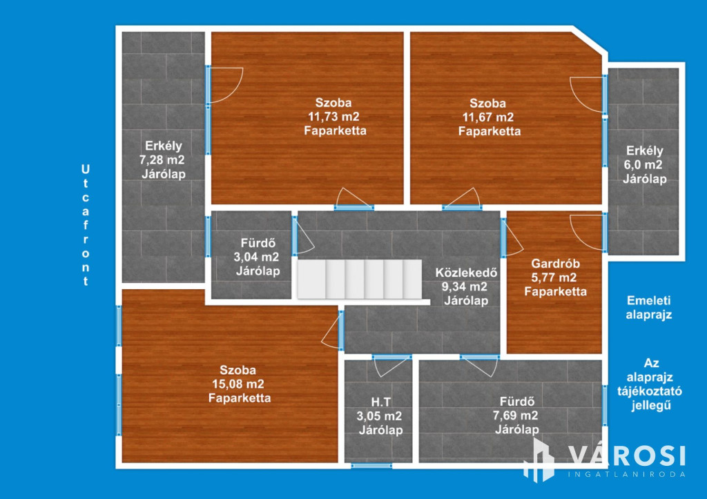 A lakás 1 db amerikai konyhás nappalival, 4 db hálószobával, 3 db fürdőszobával, külön Wc-vel, közlekedővel, előtéttel, gardóbbal terasszal, erkélyekkel rendelkezik.