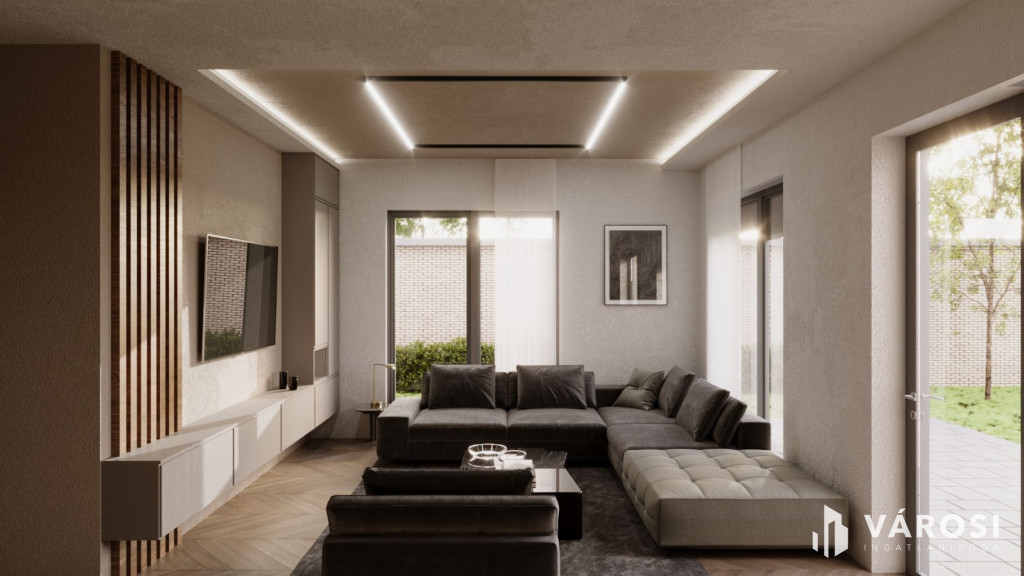 Szeged Alsóváros városrészében, ELADÓ, egy ÚJÉPÍTÉSŰ, keramzit betonból plusz 20 cm-es homlokzati szigeteléssel ellátott, minden igényt kielégítő (Luxus), 148 nm-es élettérrel rendelkező, amerikai konyhás nappali plusz négy szobás, dupla fürdős, terasszal és dupla erkéllyel rendelkező, ikerház, melyhez 301 négyzetméteres telek jár.