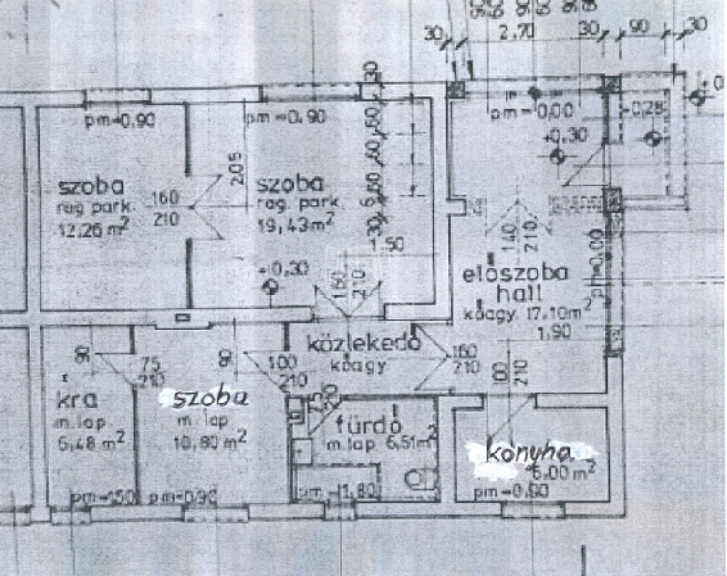 Az ingatlan 2 különálló épületből áll, az első, utcafronti épület 80m2-es, egy tágas hallba érkezünk, ahonnan nyílik a főzőfülke, majd egy közlekedőn keresztül jutunk a fürdőbe és a 3 szobába.