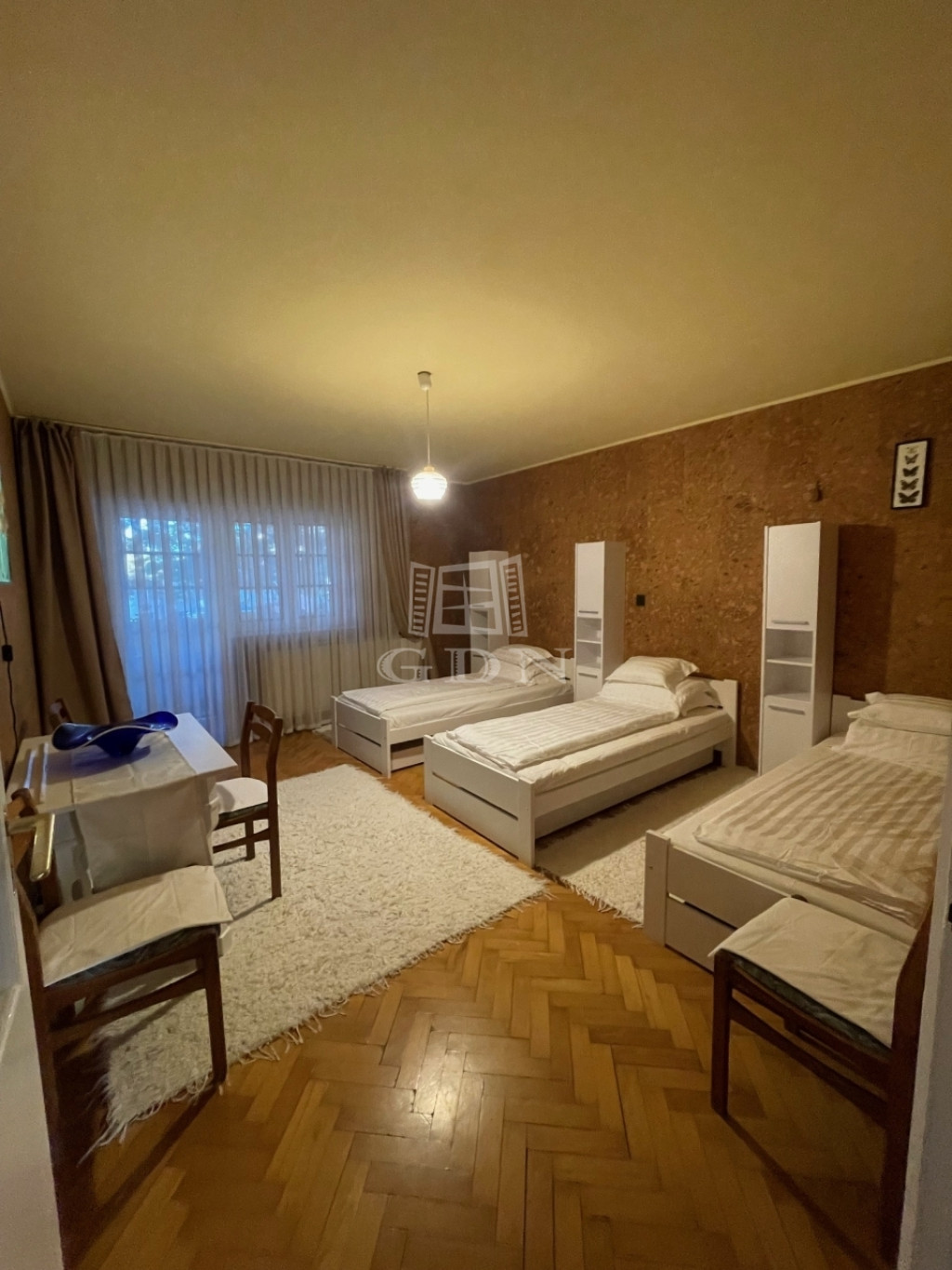 Itt kapott helyet továbbá egy háromágyas vendégszoba saját fürdővel (hivatalos szálláshelyként bejegyezve), egy dolgozószoba, valamint egy kertkapcsolatos második konyha, kamra, mosókonyha, pincelejáró és garázs is.