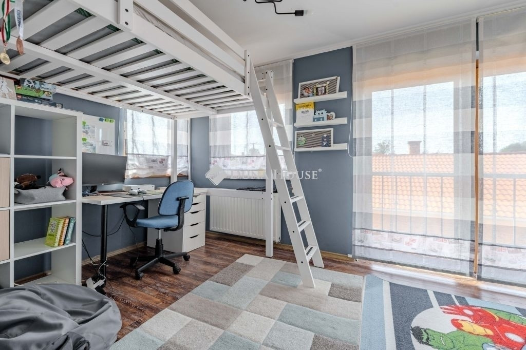 Az ingatlan egy 200 m²-es, tágas és napfényes családi ház, amelyhez kétállásos, fűtött garázs is tartozik. A ház elosztása praktikus: nappali, több hálószoba, két fürdőszoba és három WC biztosítja a kényelmet.