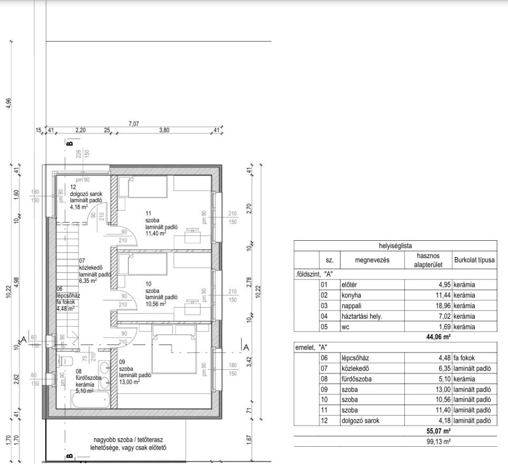 - tetőterasz vagy nagyobb emeleti szoba kialakításának lehetősége