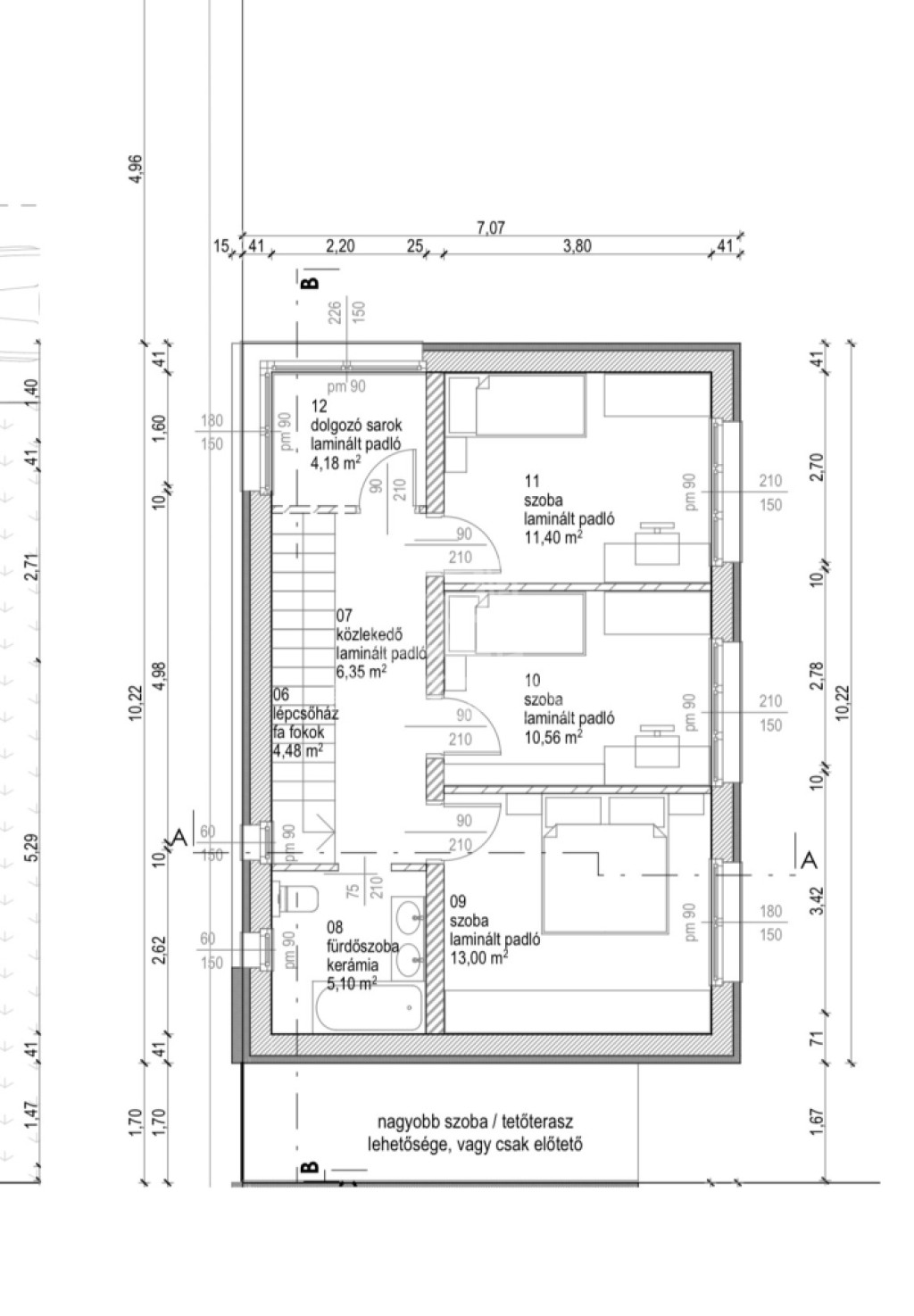 A jól átgondolt elrendezésnek köszönhetően a ház tágas, világos és jól kihasználható tereket biztosít az egész család számára