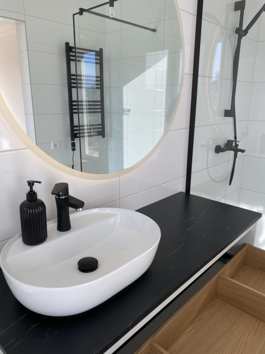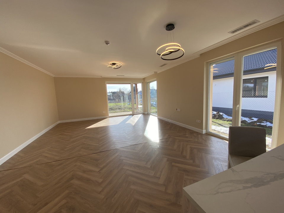 A telek kiváló tájolású ( kelet-nyugat). A következő helyiségek kerültek kialakításra : amerikai konyhás nappali-étkező, 3 hálószoba, 2 fürdőszoba ( egyik tusolós, másik kádas ), vendég WC, háztartási helyiség benne 120 literes melegvíztároló, dupla garázs, burkolt terasz, 40 m2-es burkolt kocsibeálló. Komplett konyha , gépekkel együtt ( hűtő, mélyhűtő, mosogatógép, sütő, mikró, főzőlap, szagelszívó) szigetes megoldással. Felszerelve még elektromos redőnyök, lámpatestek ( kivéve a 3 hálószoba ), külső világítás , kamera-riasztórendszer, garázskapu ( hőszigetelt Hörmann ), rejtett karnisok minden ablakon, padlószegély, működő internet és 3 szobában kábeltv, 2 db Velux fénycsatorna a világosabb terek miatt, valamint ingatlan biztosítással is rendelkezik az ingatlan. A fentiek alapján már csak a bútorokat kell hozni ! Ingatlanügynökök NE keressenek !