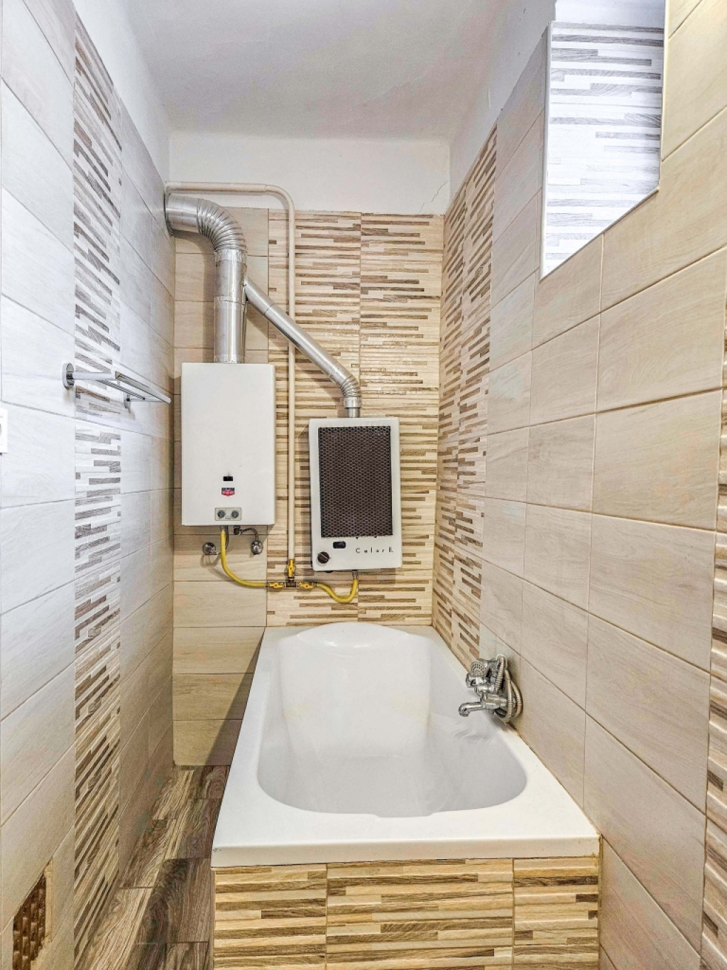 A meleg vízről gázzal működő átfolyós rendszerű melegítő, a fűtésről konvektorok gondoskodnak.