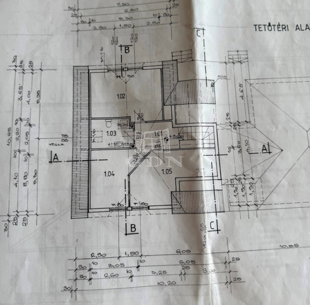 - a tetőtér 43m2 : 3 hálószoba, fürdő, wc, közlekedő került kialakításra.