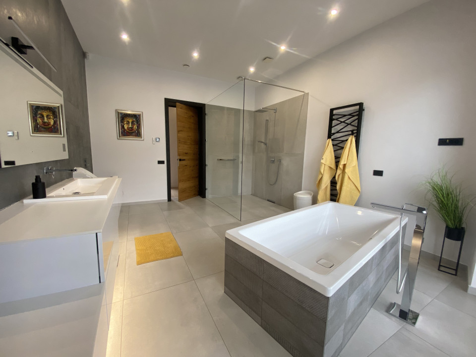 A bruttó 437 m²-es, 381 m² hasznos lakótérrel rendelkező ingatlan a legmagasabb igények szerint épült, minőségi anyagokkal, a legkorszerűbb technológiákkal és beépített gépekkel felszerelve.