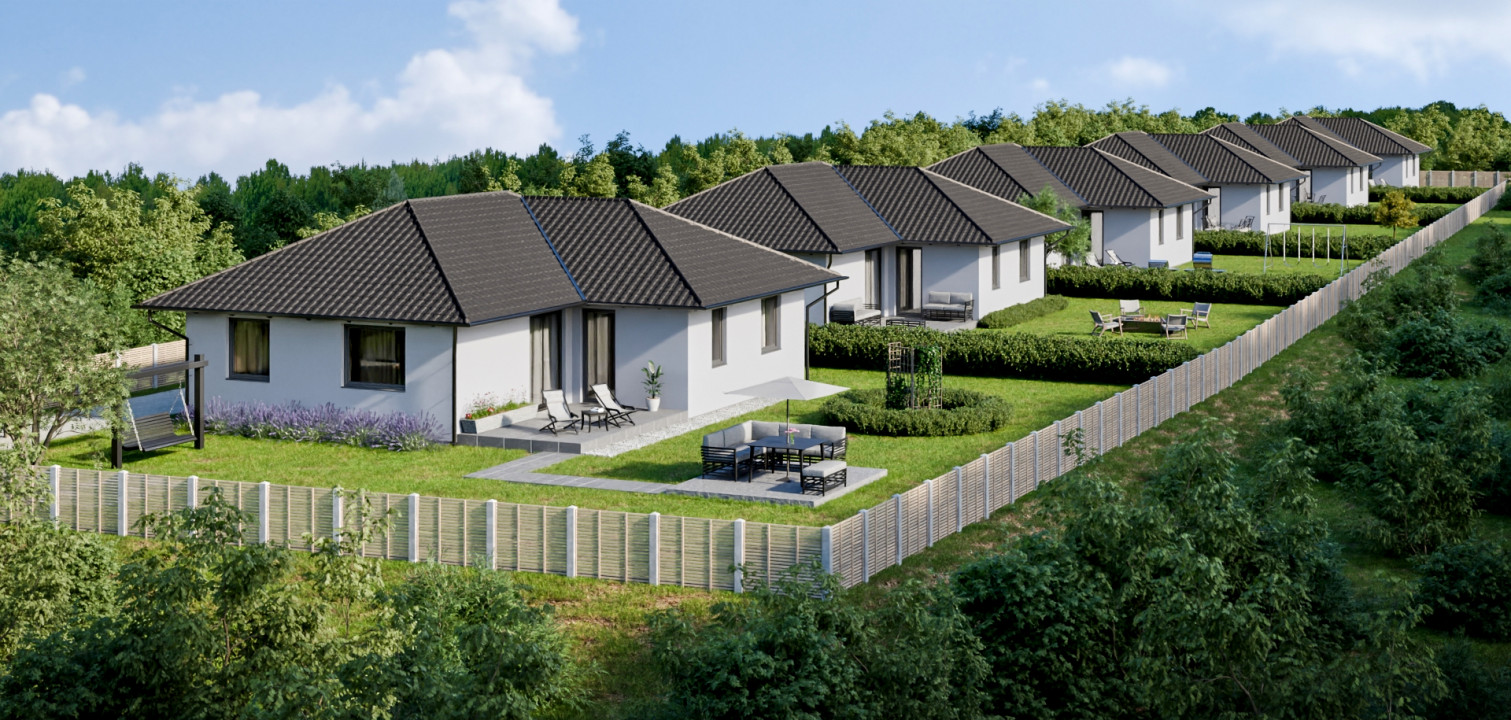 A házak 103 m²-esek, világos, tágas terekkel és 19 m²-es fedett terasszal, amely tökéletes helyszíne lehet a pihenésnek és a családi együttléteknek.