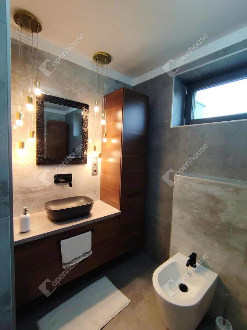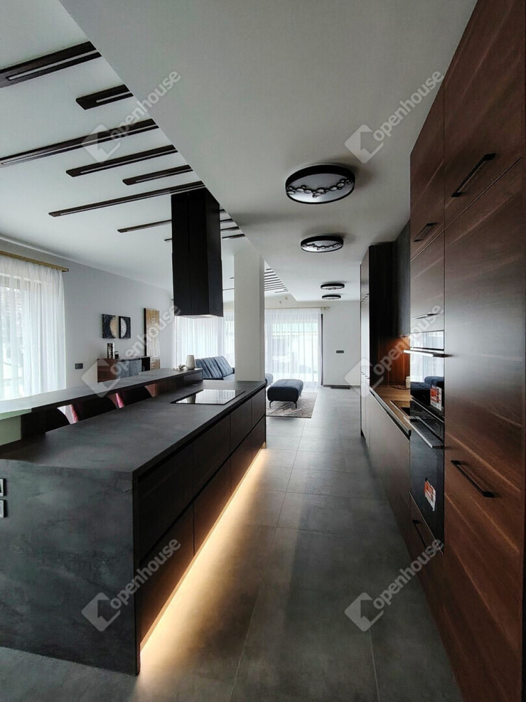 Ez a teljesen új, azonnal birtokba vehető otthon a luxus és a kényelmes életérzés tökéletes megtestesítője. A 160 m²-es ház két nappali és három hálószoba kialakításával, valamint félemeletes elrendezésével mindössze 9 lépcsőfokkal biztosítja a család minden tagjának az intim, mégis tágas tereket.