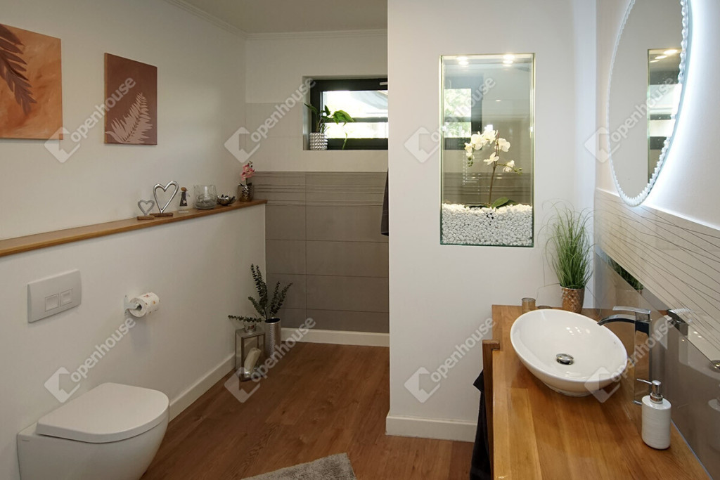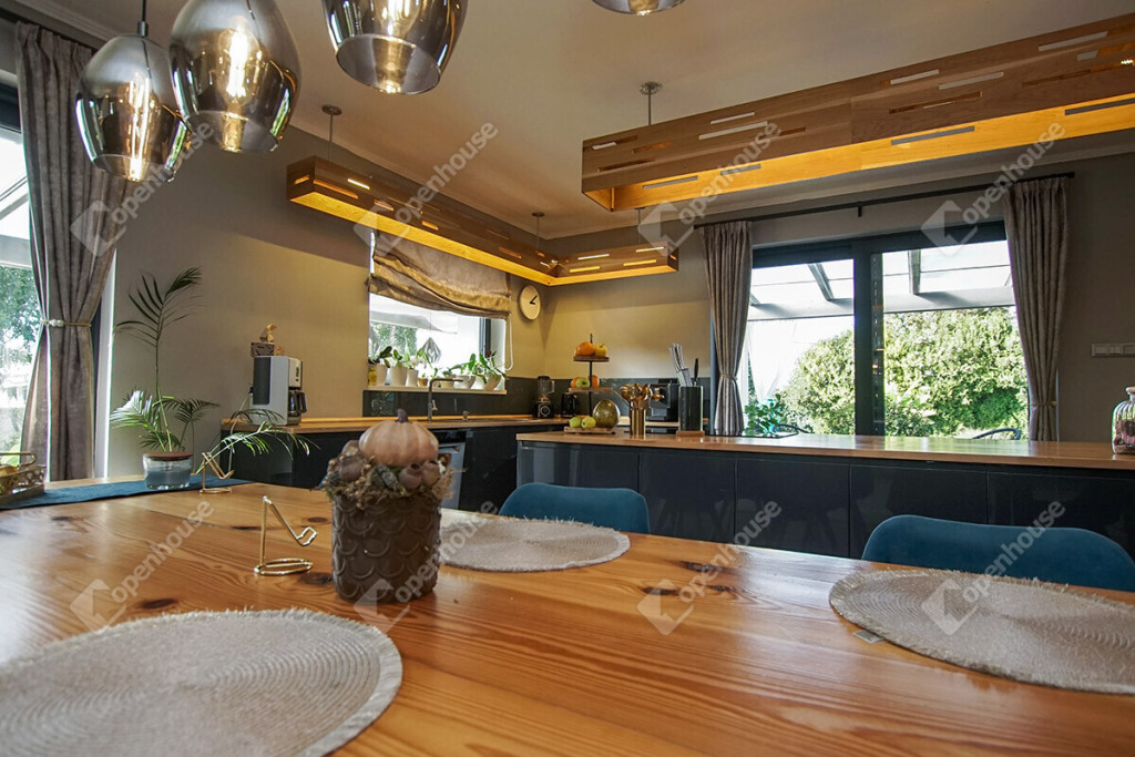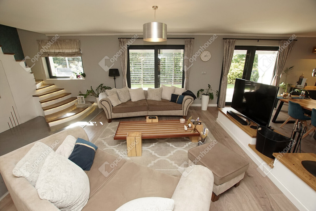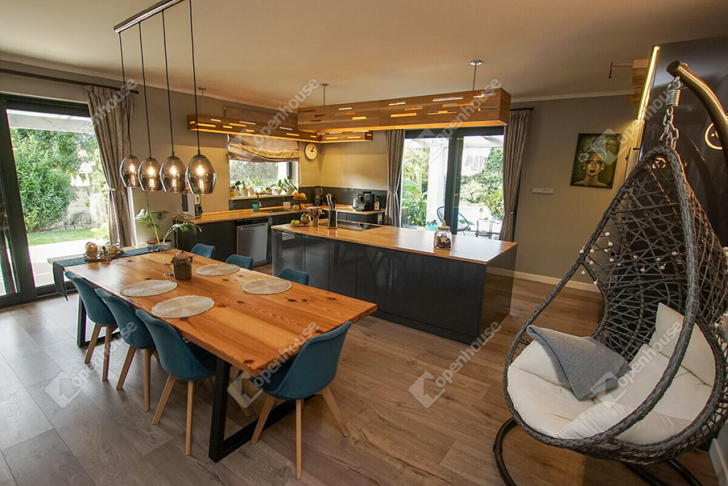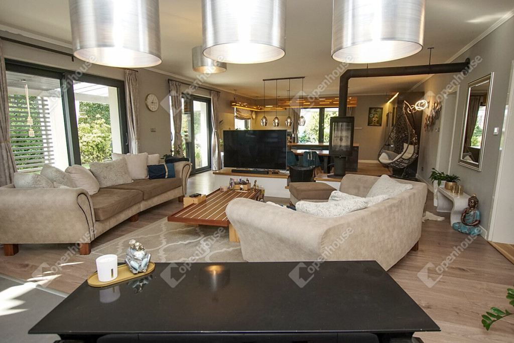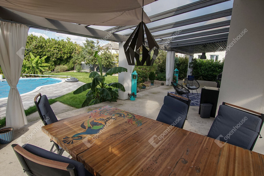 - A nappaliból és a konyhából is közvetlen kapcsolat van a 160 m2-es fedett, hangulatos terasszal.