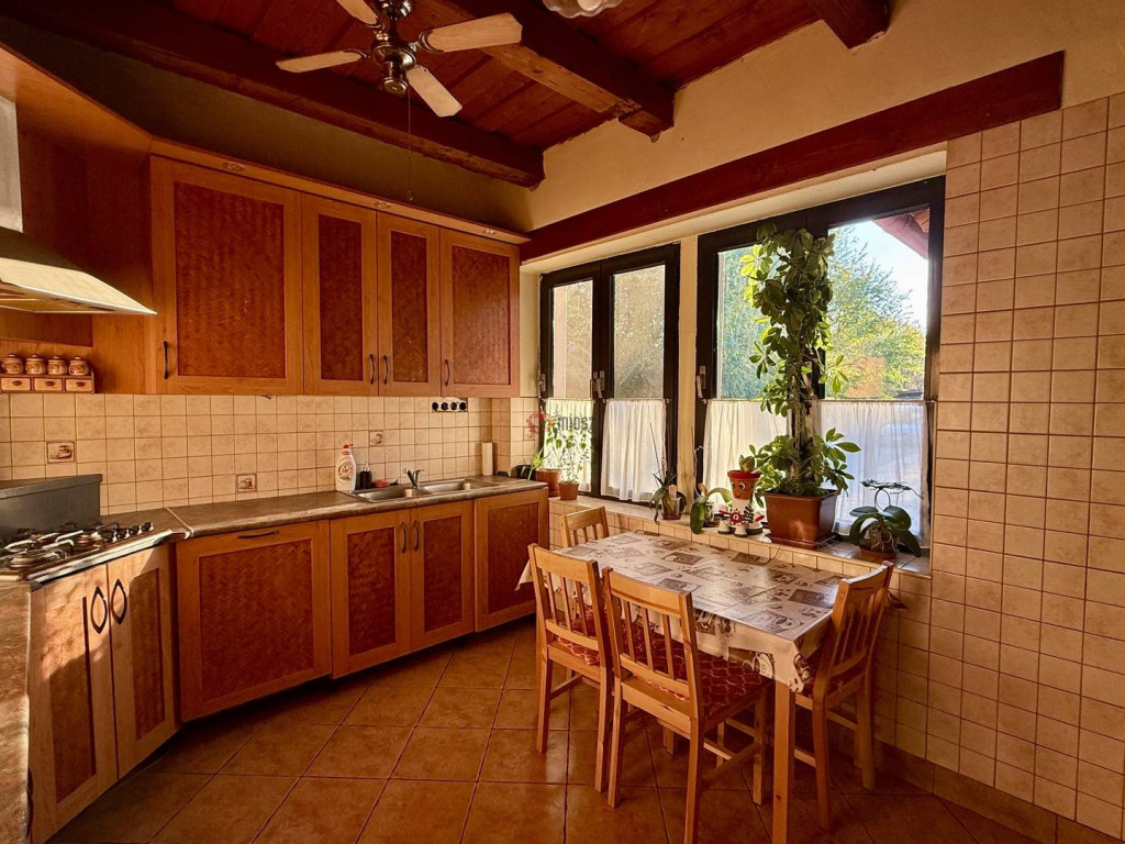 A HÁZ az 1900-as évek első felében épült, téglából. Jó állapotú masszív épület, ami 14 éve új cseréptetőt kapott az eredeti fagerendák megtartásával és felújításával. A fűtés vegyestüzelésű kazánnal történik padlófűtéssel. A burkolat járólap illetve laminált padló.