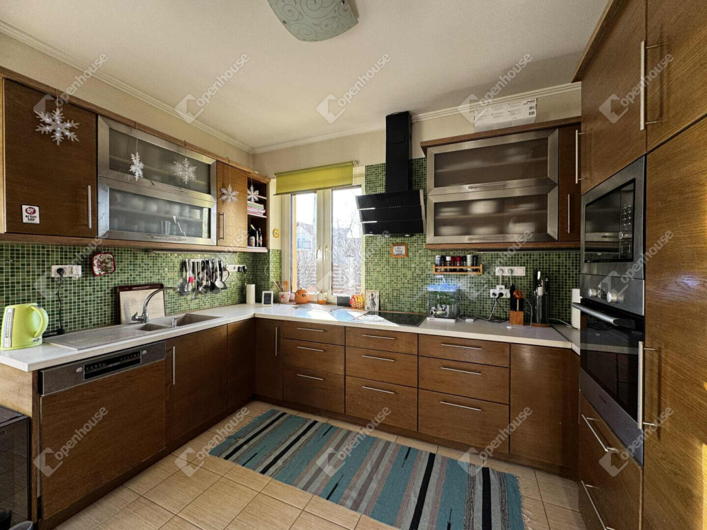 - Szép beépített, gépesített konyha étkezővel, egy légtérben a nappalival.