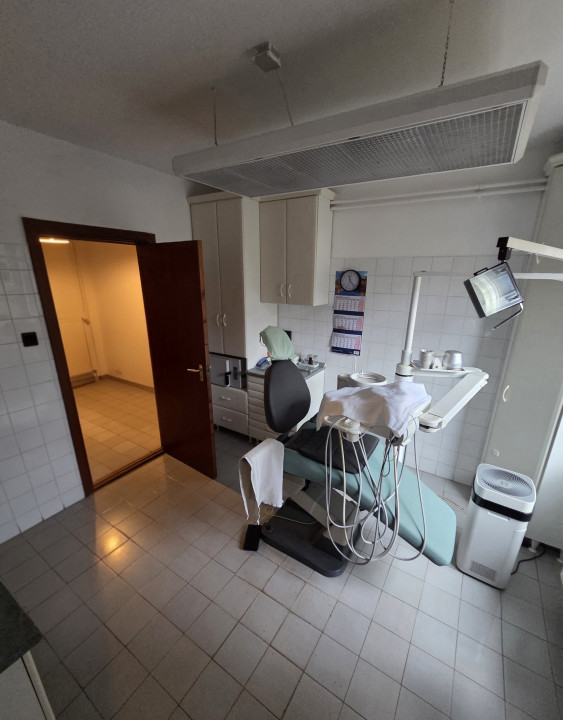 A földszintre a bejárati ajtón keresztül egy szélfogóba érkezünk, amely praktikusan választja el a külső teret az otthon belső világától. Innen jobbra egy régen fogorvosi rendelőként működő egység található, saját váróval, abból nyíló WC-vel kézmosóval, valamint a rendelő helyiséggel. Az elrendezés ideális egészségügyi, irodai vagy szolgáltató tevékenységhez, ugyanakkor igény szerint lakótérré is visszaalakítható.