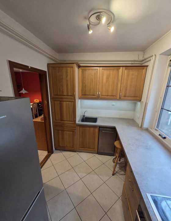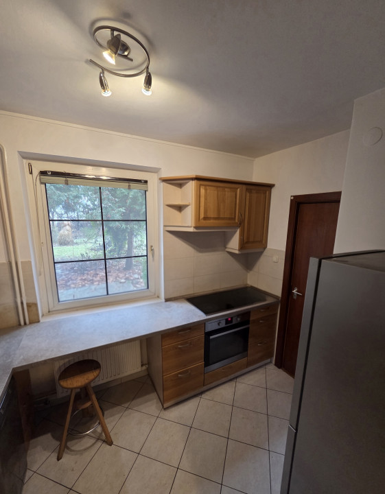 Az alsó szinten kapott helyet továbbá a különálló konyha, mellette kamrával, egy WC kézmosóval, valamint a lépcsőház, amelynek alsó része beépíthető tárolóként. A fa lépcső meleg hangulatot teremtve vezet fel az emeletre.