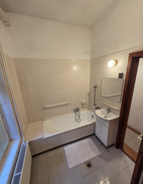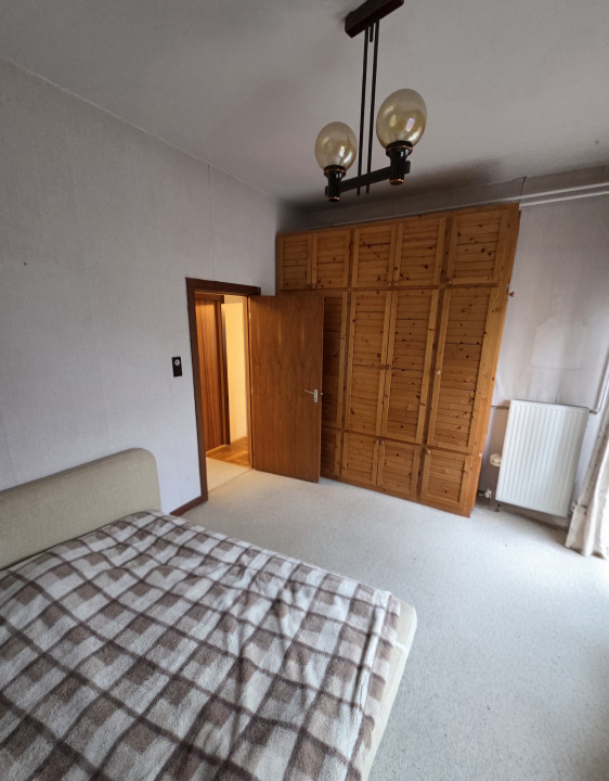 A lépcsőházból jobbra egy közlekedő nyílik, ahonnan balra egy erkéllyel rendelkező hálószoba érhető el. A szobával közel szemben található a háztartási helyiség, ahol a központi fűtés gázkazánja is helyet kapott. Mellette a fürdőszoba került kialakításra, fürdőkáddal és épített zuhanykabinnal. A közlekedő végén egy további szoba található.