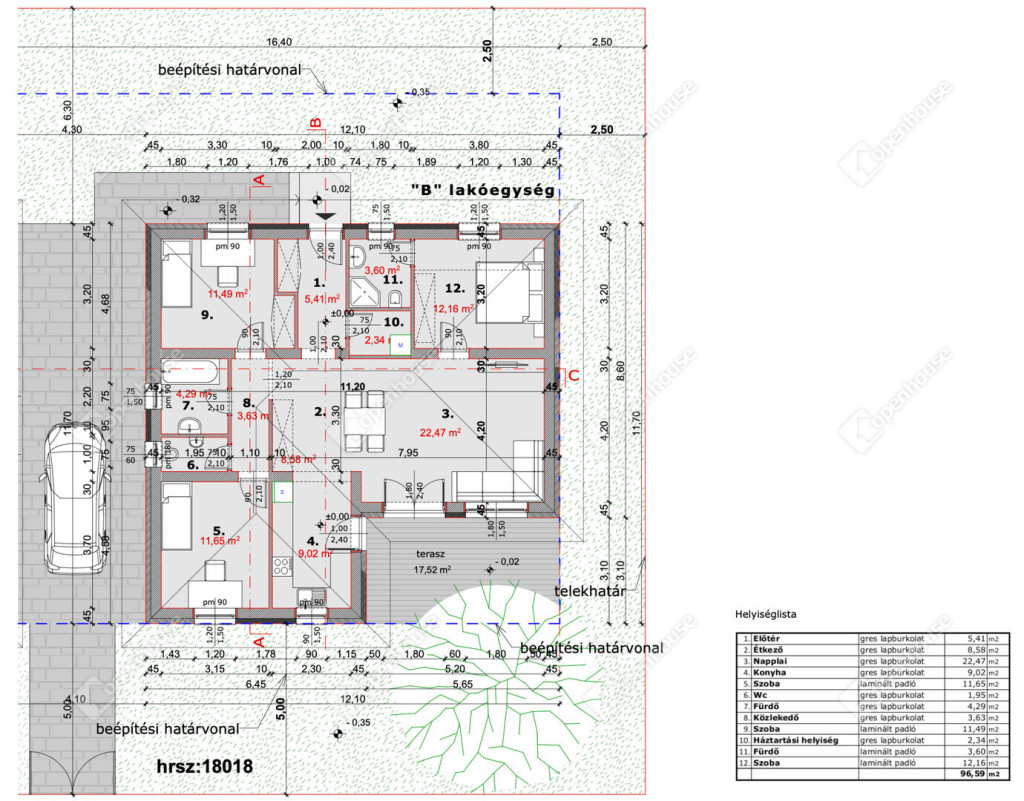 97 m²-es családi ház + 18 m² épített terasz kerámia burkolattal,