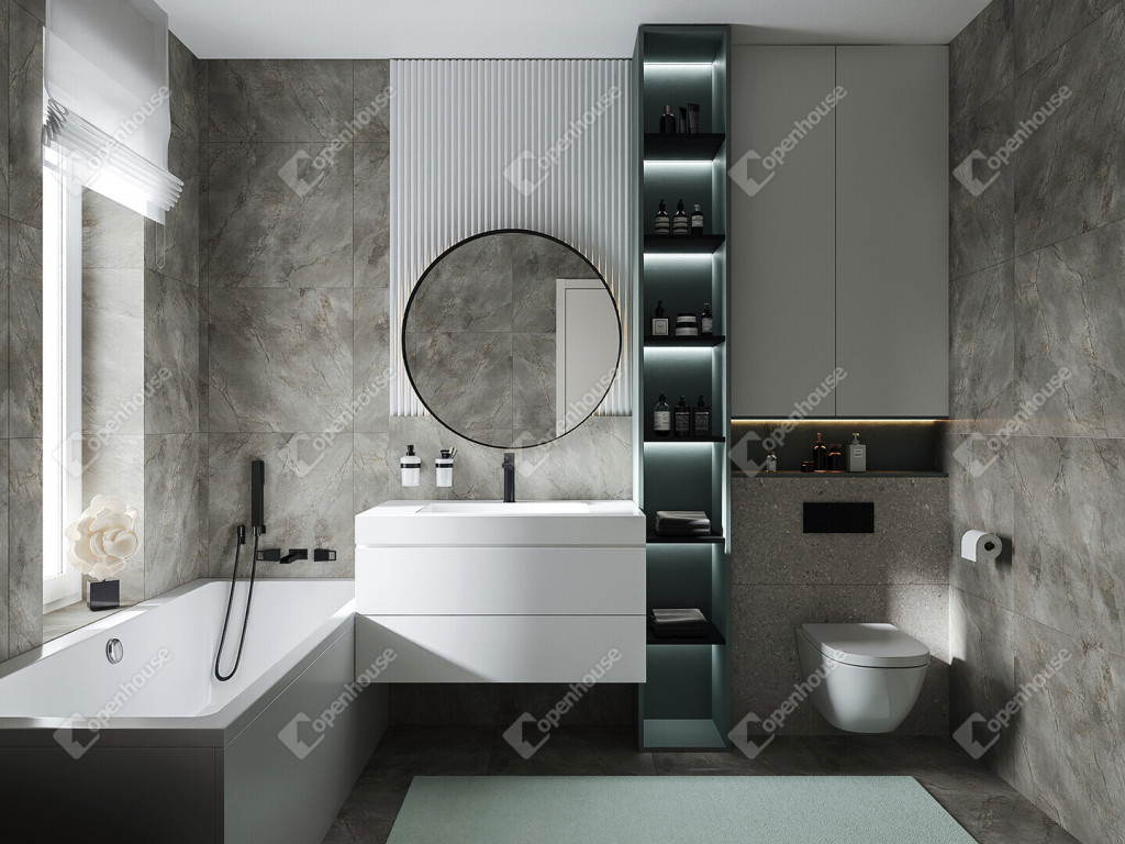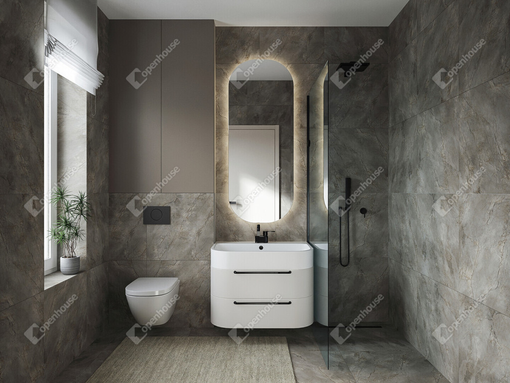 - 3 szoba, nappali + konyha, 2 fürdőszoba, háztartási helyiség