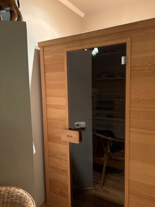 - külön kis ház jakuzzival, zuhannyal, kézmosóval, WC-vel, melegvíz-ellátását villanybojler biztosítja