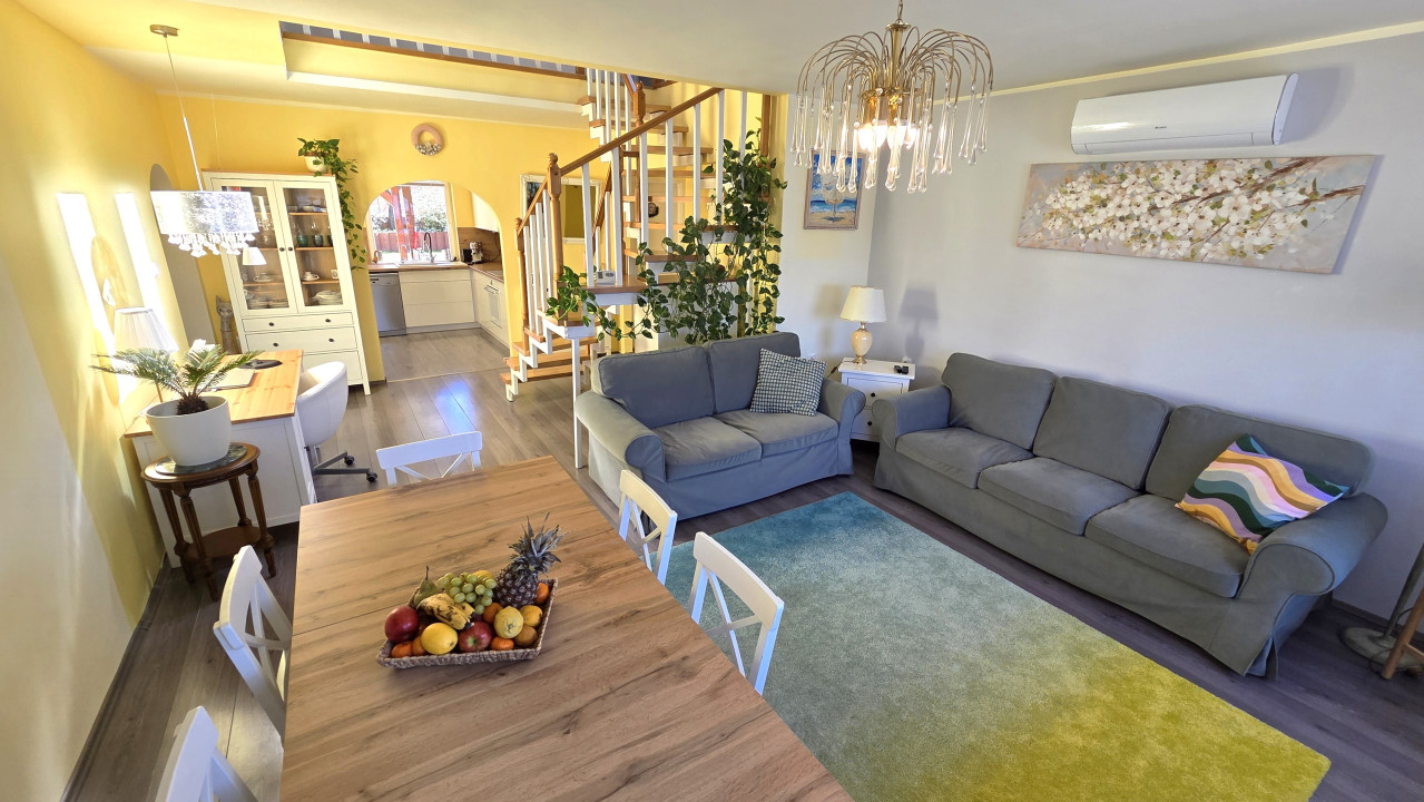 - Amerikai konyhás nappali, közvetlen kertkapcsolattal