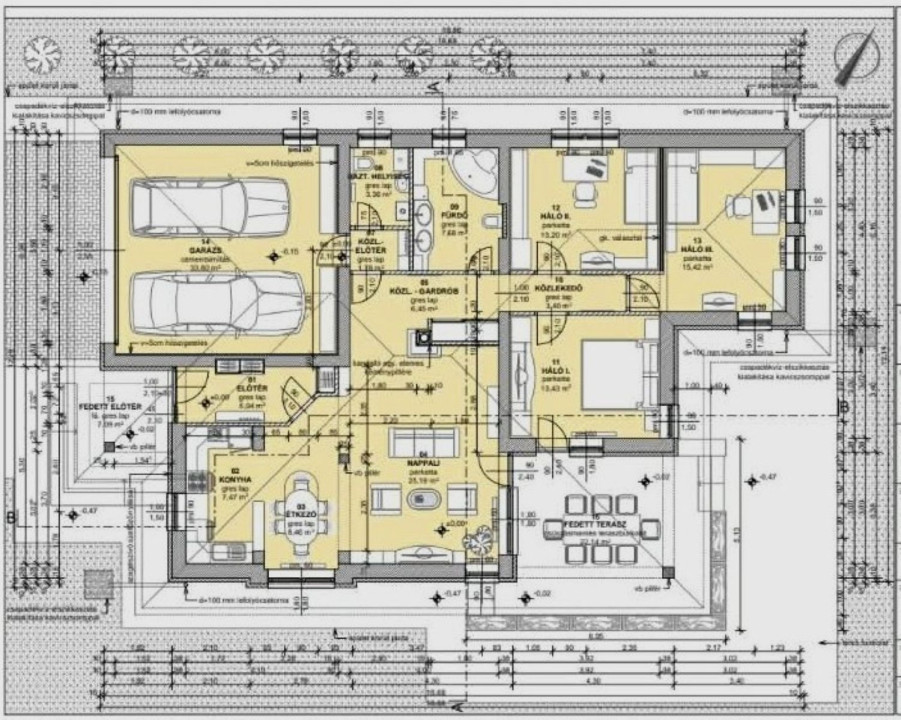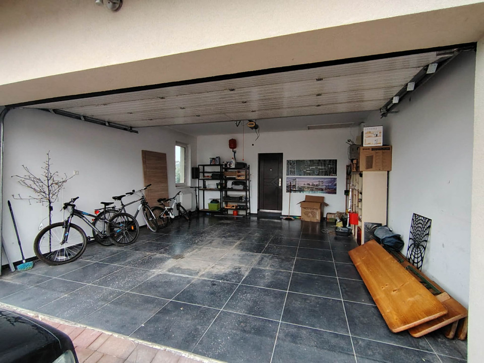 Az ingatlanhoz 36 m²-es dupla garázs, valamint egy 26 m²-es, teljesen fedett terasz tartozik, ideális helyszínt biztosítva a pihenéshez és a családi együttlétekhez.