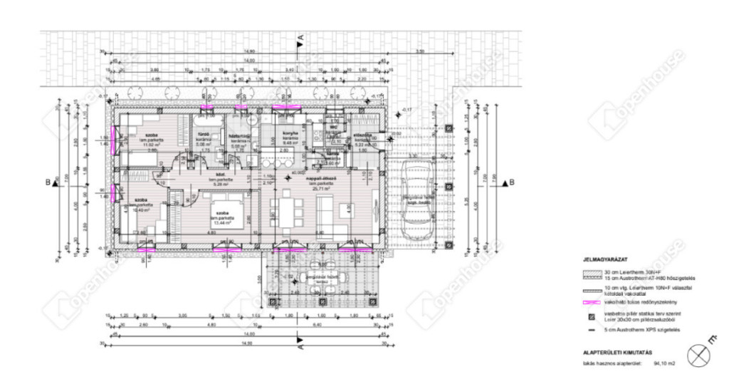 A 94,11 m² hasznos alapterületű, földszintes családi ház gondosan megtervezett beosztásával igazi családbarát otthon: