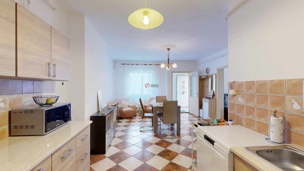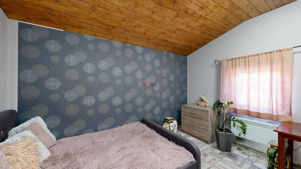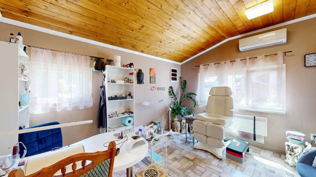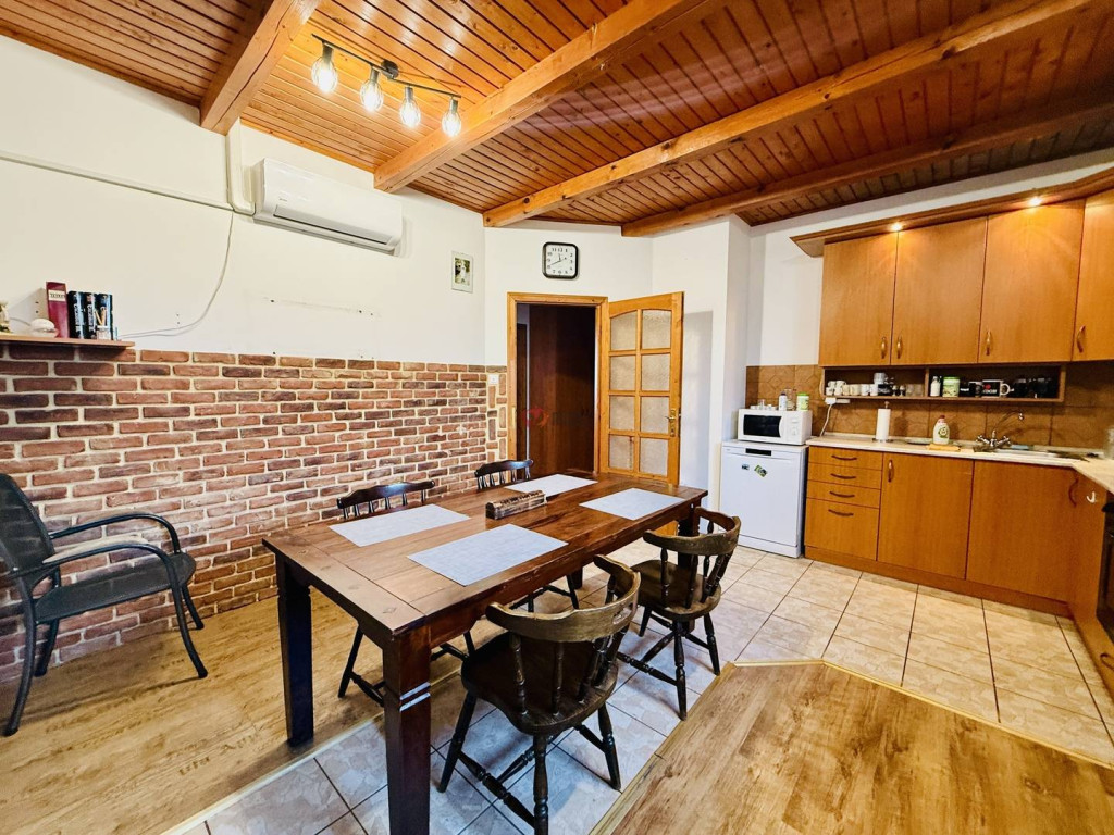 4) A különálló épület 2005-ben épült B30-as téglából, 15 cm-es szigeteléssel. Itt egy 77 m2-es lakás került kialakításra, elrendezése: 3 különnyíló szoba, konyha, fürdőszoba. Fűtése kandallóval és villanyradiátorokkal történik. Ez a lakrész teljesen újszerű, frissen festett, új konyha beépítése folyamatban.
