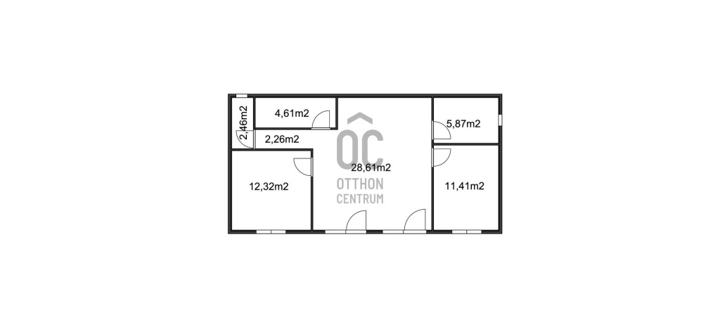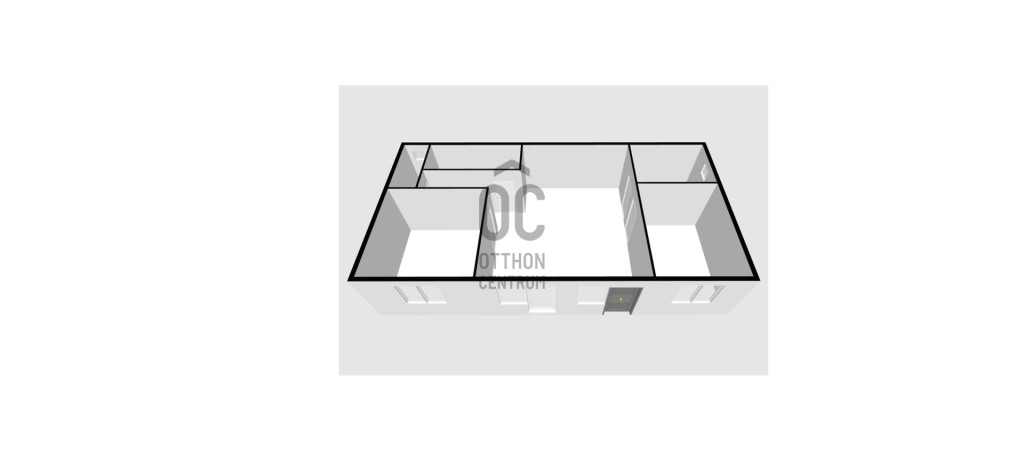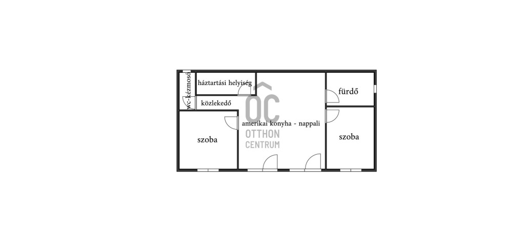 A két szobán kívül, a 68m2-en a ház magában foglal egy hatalmas amerikaikonyha-nappalit, egy tágas fürdőszobát, egy mellékhelyiséget kézmosóval és egy kamrát.