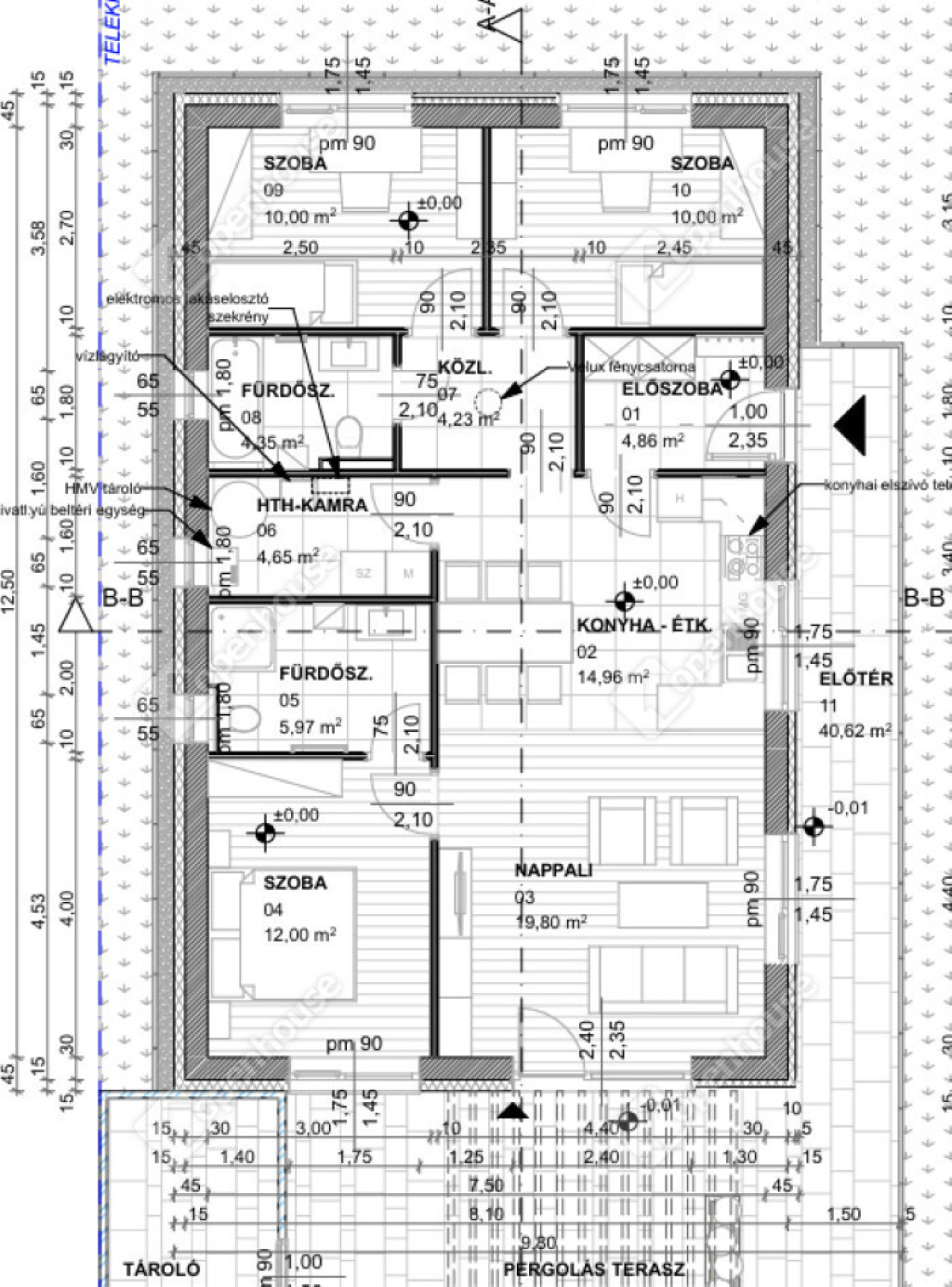 - 3 x hálószoba (2 x 10 m2 + 1 x 12 m2)