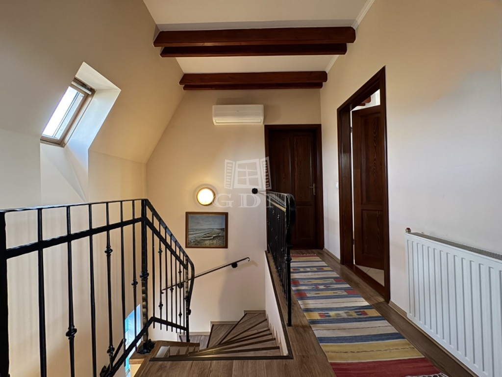 A hőszigetelt, 2 rétegű üvegezésű nyílászárók, a magas minőségű hideg- és melegburkolatok, a dizájnos falpanelek, valamint a tetőtéri látszógerendás a természetes eleganciát és tartósságot képviselik.
