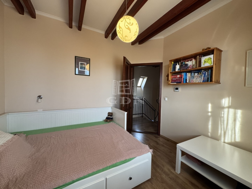 A tetőtérben 3 hálószoba, kettő gardrób és fürdőszoba, wc kapott helyet. A szinthez kapcsolódik egy fedett, 9 m²-es panorámás erkély, ahonnan lenyűgöző kilátás nyílik a városra.