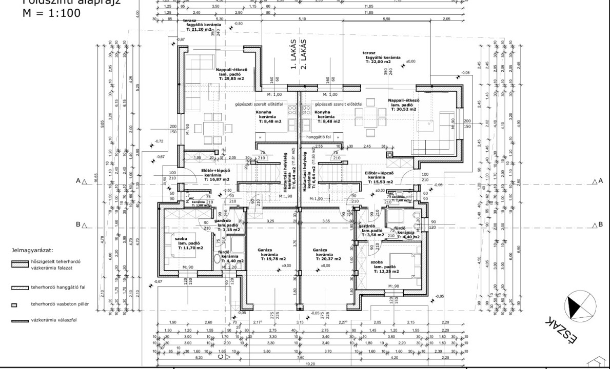 Műszaki tartalom: Főfalazata 30 cm-es Wienerberger X-therm rapyd dryfix téglából készül 10 cm-es szigeteléssel,