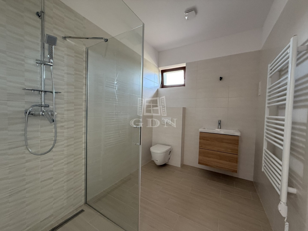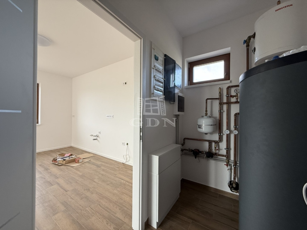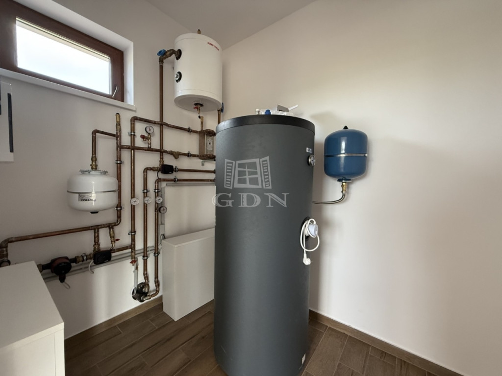 A nyílászárók műanyagból készültek,3 rétegű hőszigetelt üvegezéssel, rejtett redőny tokkal. A burkolatok magas minőségű járólap, illetve laminált padló. Fűtése-melegvíz: hőszivattyú megoldással, padlófűtéssel.