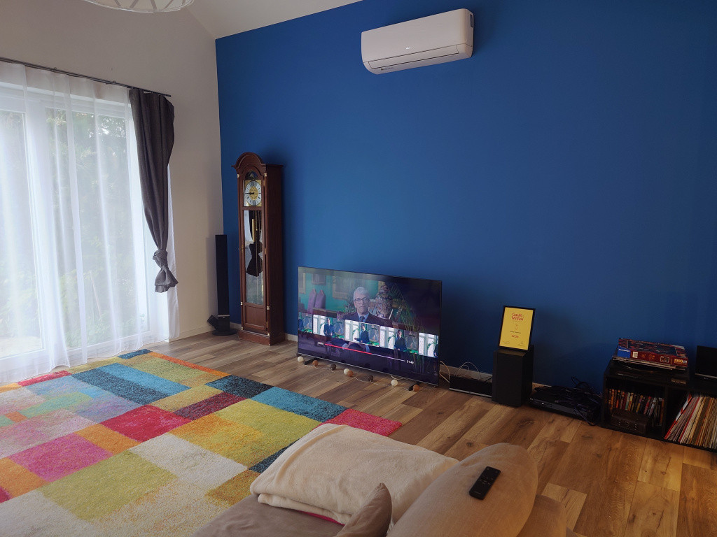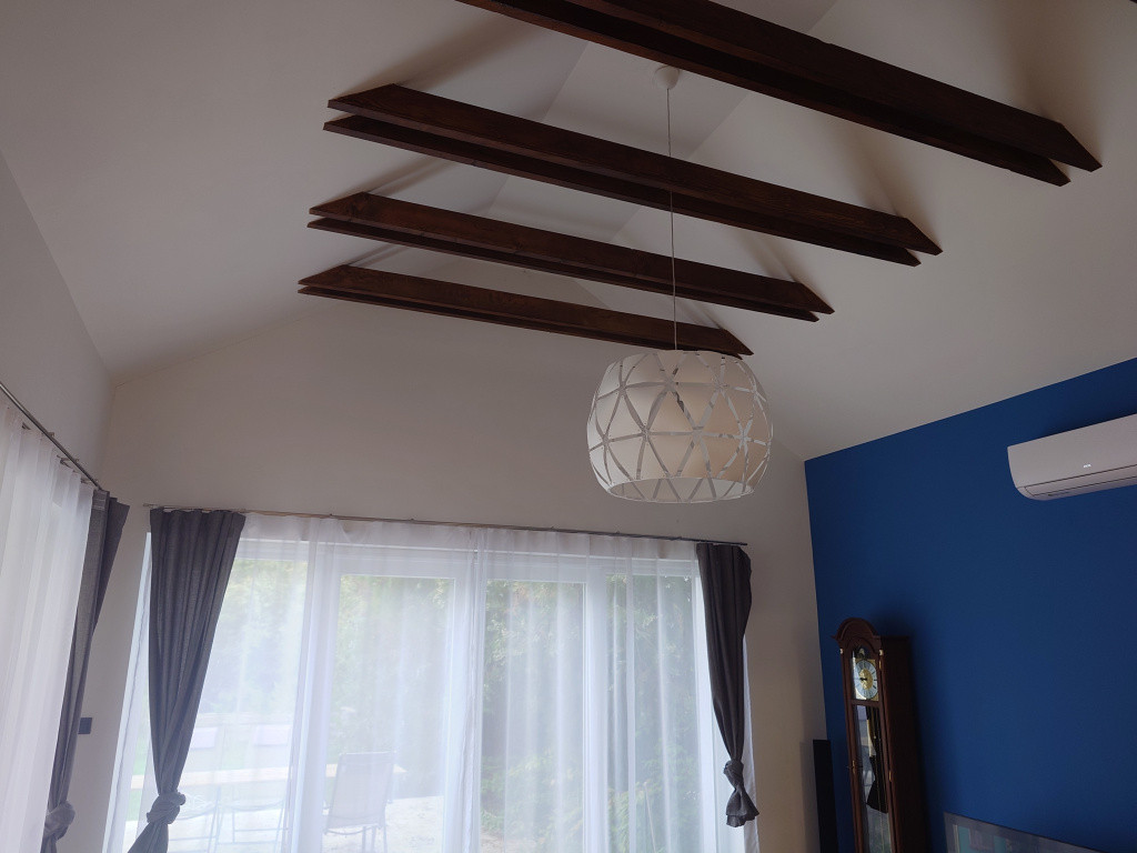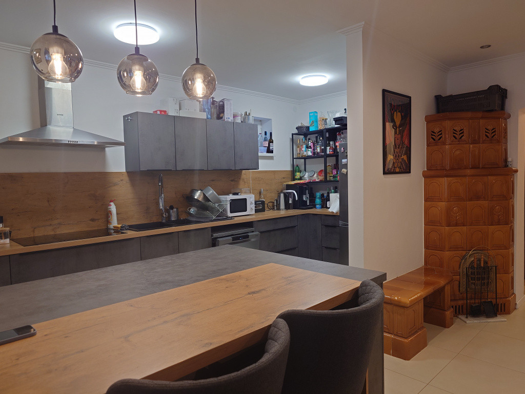 Fűtés és a melegvíz: kombi gázkazán termosztáttal + hűtő-fűtő klímák. Nappaliban egy épített cserépkályha biztosítja az alternatív fűtést.