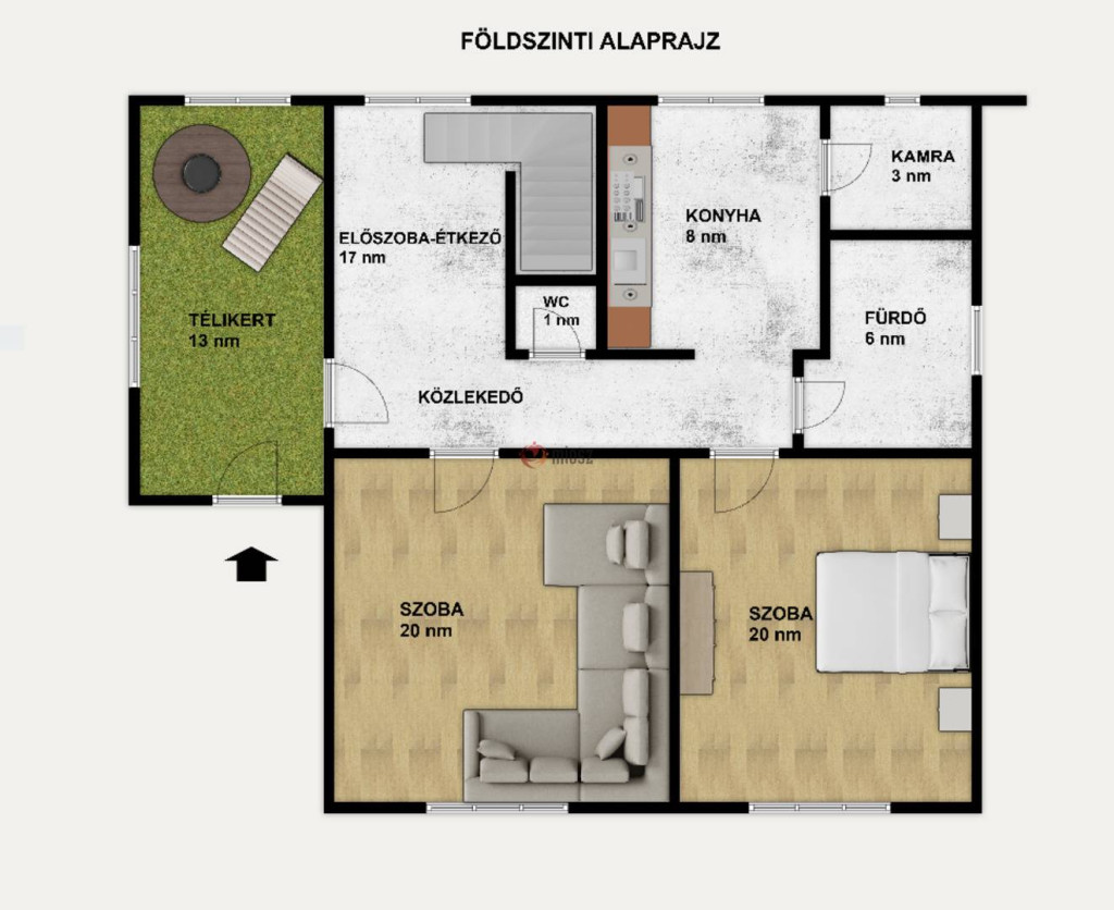 - Földszint: Hangulatos télikert, 2 nagy szoba, tágas étkező, konyha, fürdőszoba, kamra.