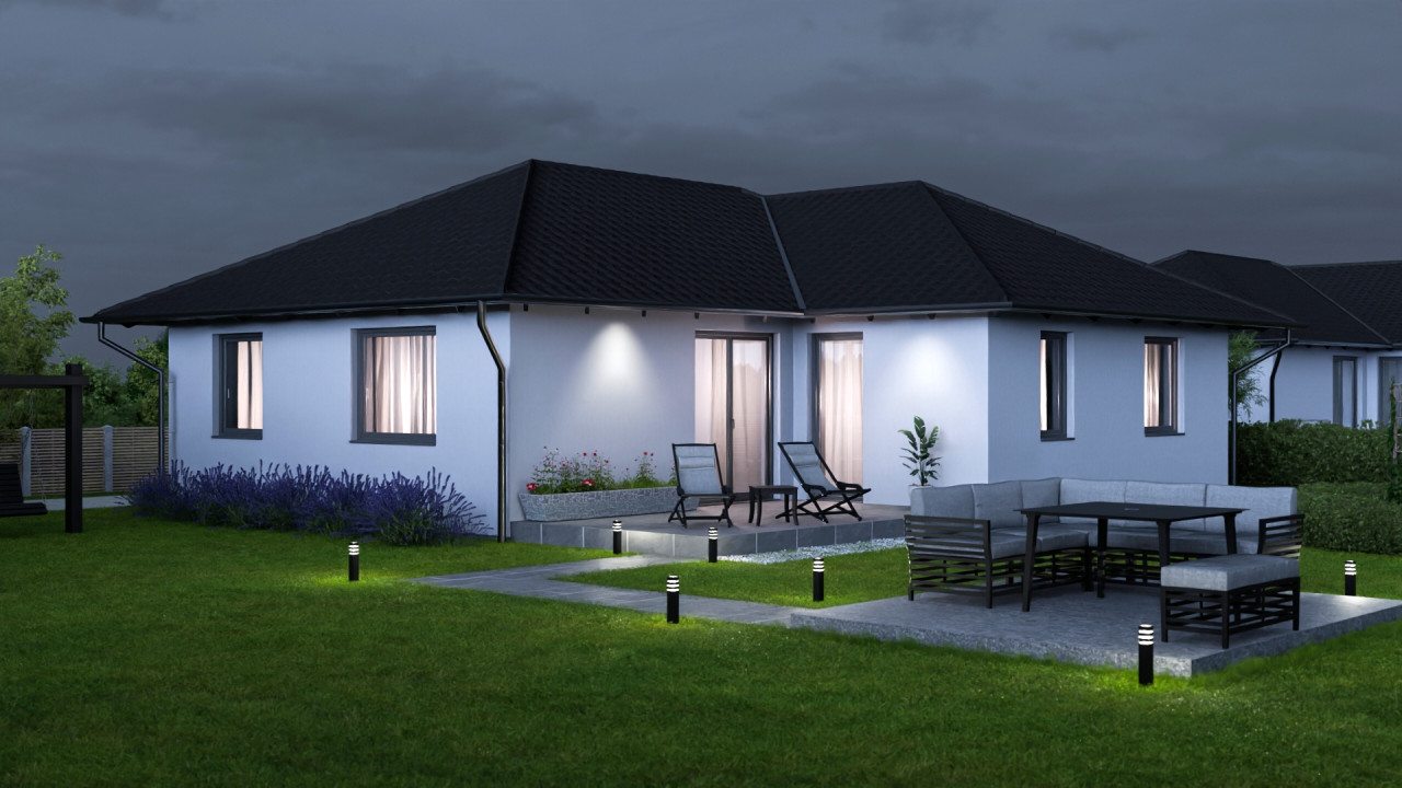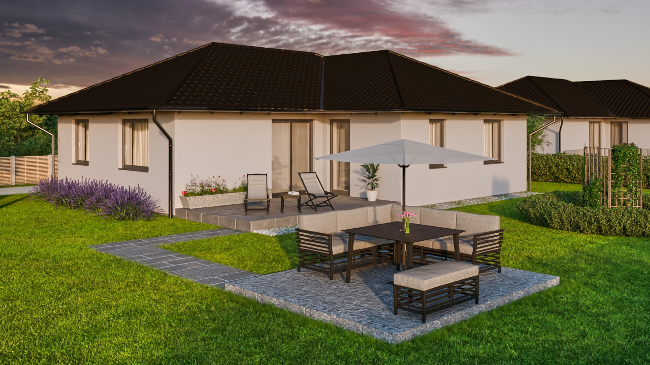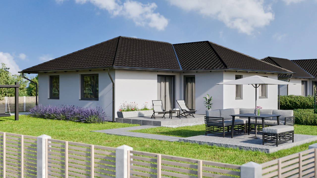 A házak 103 m²-esek, világos, tágas terekkel és 19 m²-es fedett terasszal, amely tökéletes helyszíne lehet a pihenésnek és a családi együttléteknek.