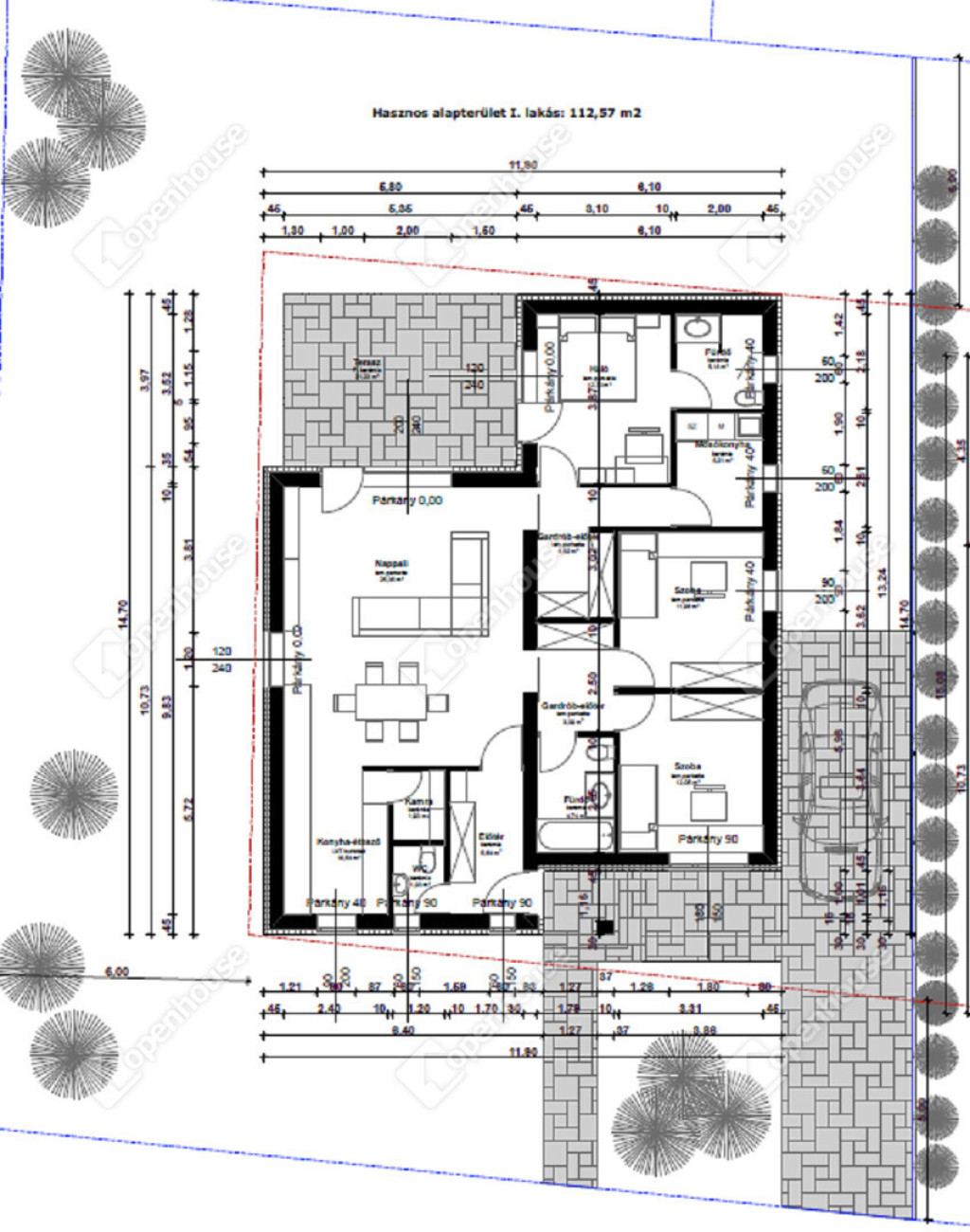 AZ INGATLANRÓL: Az ingatlan minőségi alapanyagok felhasználásával és a modern technológia alkalmazásával készül, a lehető legmagasabb színvonalon, modern megjelenéssel. A nettó alapterület 112,57 m2, ami magába foglal egy hatalmas amerikai konyhás nappalit, 3 hálószobát, 2 fürdőszobát WC-vel,egy vendég WC-vel, egy gardróbot, egy kamrát és egy háztartási helyiséget. Továbbá az ingatlanhoz tartozik egy 21,23 m2-es terasz, és egy saját használatú 533 m2-es telek is.