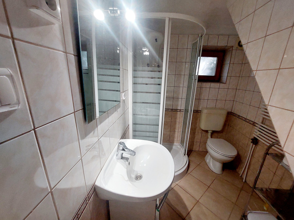 A házban a lakószinten 1 tágas teraszra nyíló konyha 2 szoba, 1 félszoba, 1 fürdőszoba található, melyek a nagy család számára is kényelmes életteret biztosítanak. Az alsó szinten a terasz alatti szaletliből 1 szoba nyílik, innen 1 félszoba és 1 fürdő érhető el.