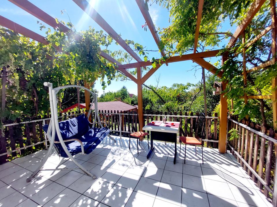 A 30 nm-es, déli fekvésű terasz a ház igazi ékköve, ahol egy mesés, szőlővel befuttatott lugas nyújt kellemes árnyékot a nyári napokon. Itt élvezheti a reggeli kávét, vagy a baráti összejöveteleket.