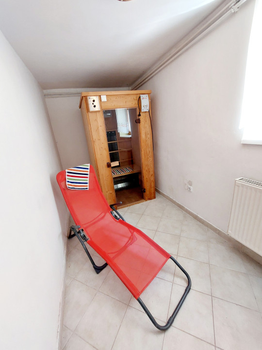 Az ingatlanhoz tartozó zárt, privát udvaron egy fedett autóbeálló védi az autóját az időjárás viszontagságaitól, és egy szerszámos épület is található. Az udvar garantálja a privát szférát, ideális pihenésre és kikapcsolódásra. A környék csendes, de ellátottsága kiváló: