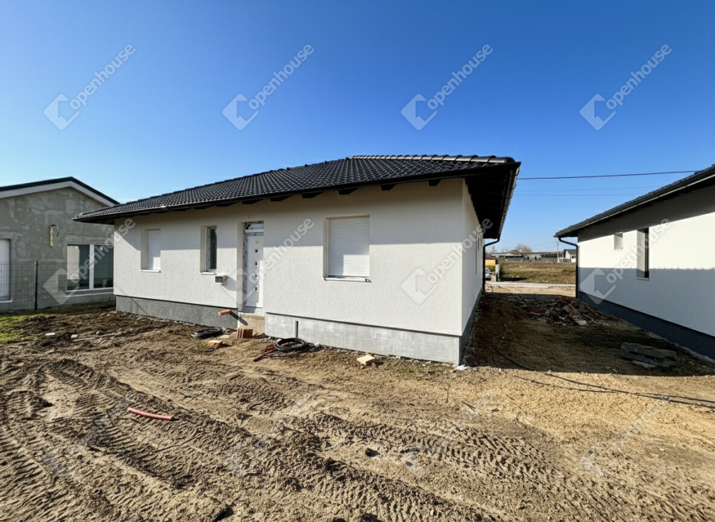Az ingatlanról: Az ingatlan minőségi alapanyagok felhasználásával és a modern technológia alkalmazásával készül, a lehető legmagasabb színvonalon, modern megjelenéssel.A nettó alapterület 97 m², ami magában foglal egy hatalmas amerikai konyhás nappalit, 2 hálószobát, egy szülői hálószobát saját fürdővel és WC-vel, egy fürdőszobát, egy külön WC-t és egy háztartási helyiséget. Továbbá az ingatlanhoz tartozik 2 db térkövezett kocsibeálló, egy nagyméretű épített terasz és egy saját használatú, 410 m²-es kertrész is. Az ingatlan 2 hónapon belül birtokba vehető, amint a burkolatok és az ajtók kiválasztásra kerültek.
