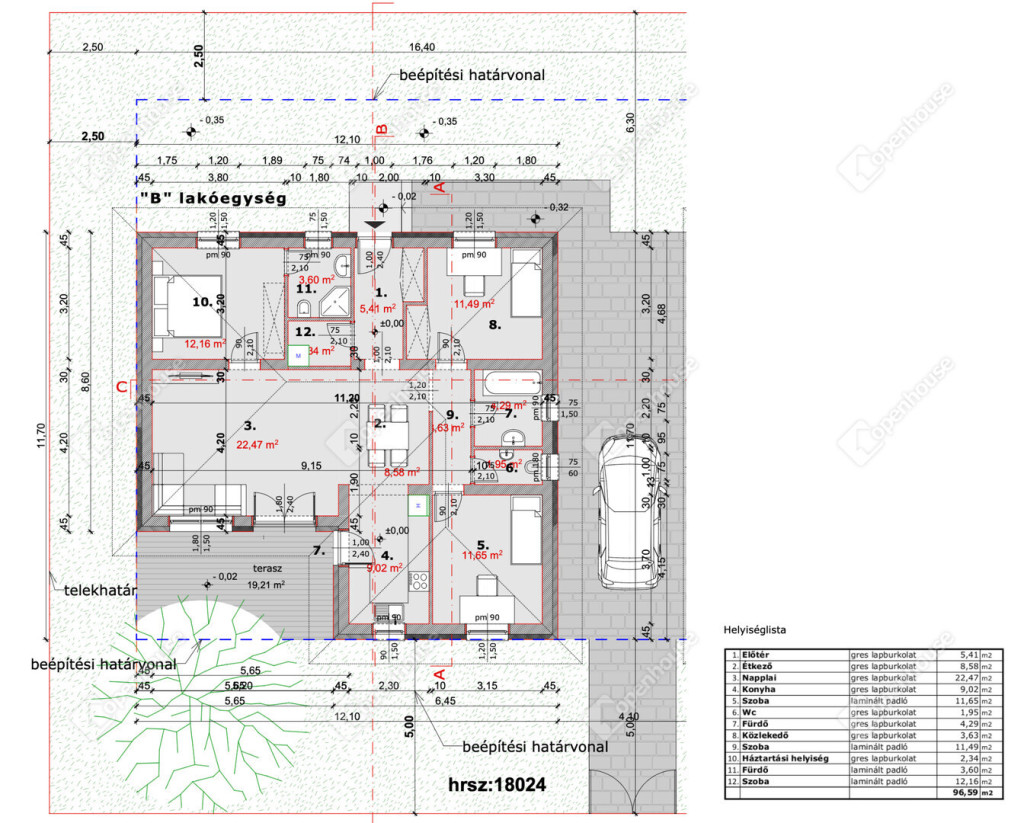 97 m²-es családi ház + 18 m² épített terasz kerámia burkolattal,