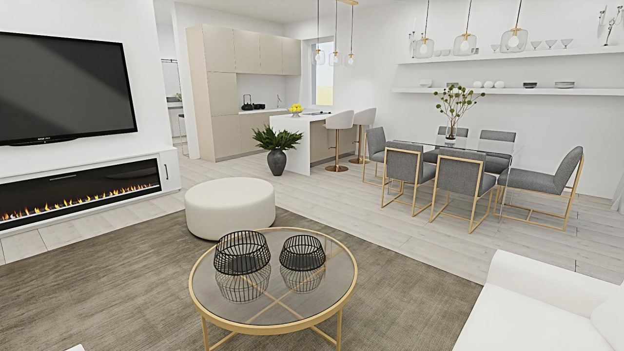 - Bal kéz felől nyílik a tágas amerikai konyhás nappali–étkező, amely a családi élet központja.