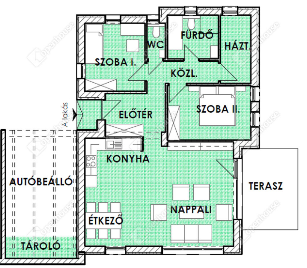 - 83,6 nm-es ikerház + 10,93 nm terasz + 22,05 gépkocsibeálló