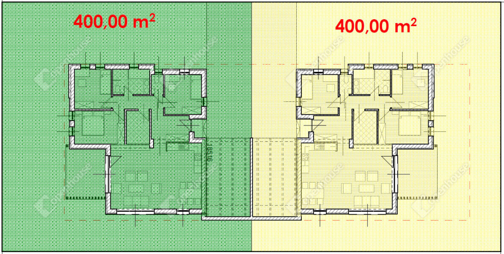 - 91,7 nm-es ikerház + 12,8 nm terasz + 22,05 gépkocsibeálló