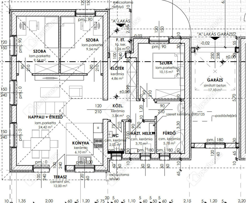 30-as tégla falak, 10-es tégla válaszfalak,