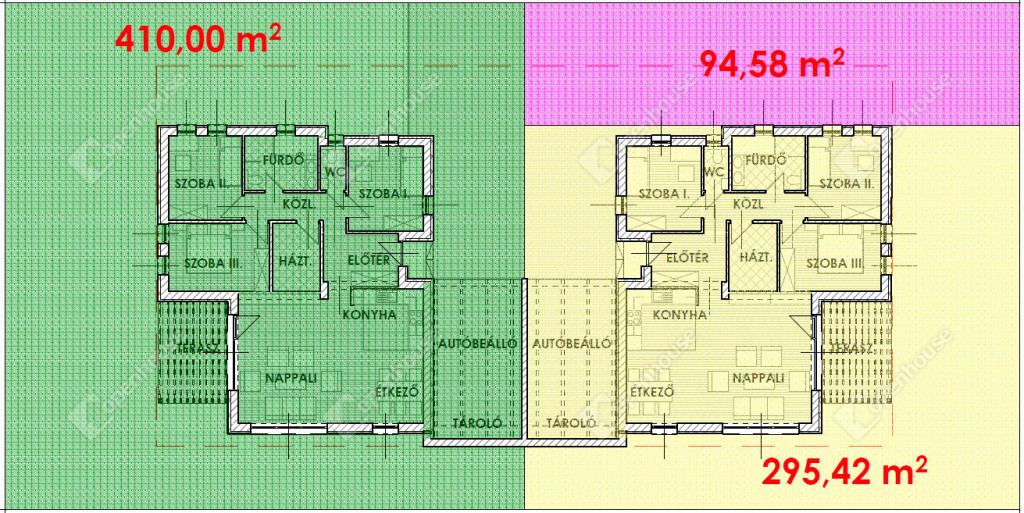 - 92,28 nm-es ikerház + 10,93 nm terasz + 22,05 gépkocsibeálló