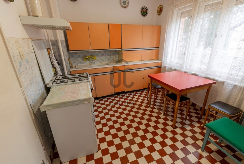 A tégla építésű, gázcirkó fűtéses, 4 szobás főépületben egy idős személy lakik, aki az ingatlan 50%-án haszonélvezeti joggal rendelkezik.