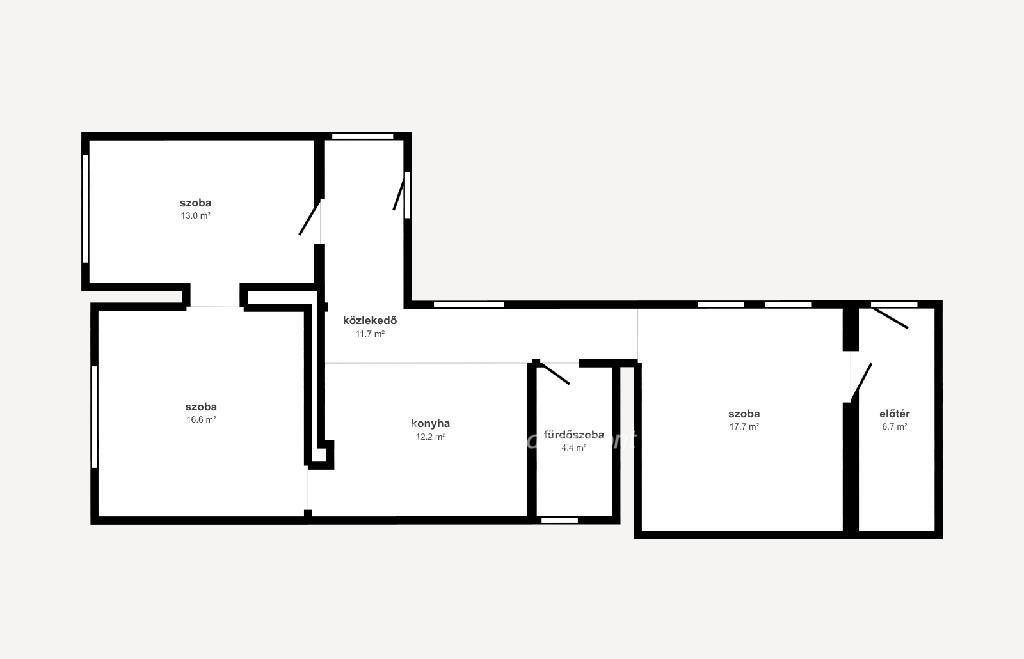 A ház elrendezése praktikus: három különnyíló szoba, konyha, előtér és közlekedő található benne. Az ingatlan két bejárattal rendelkezik, ami akár két generáció együttélésére is lehetőséget nyújt.