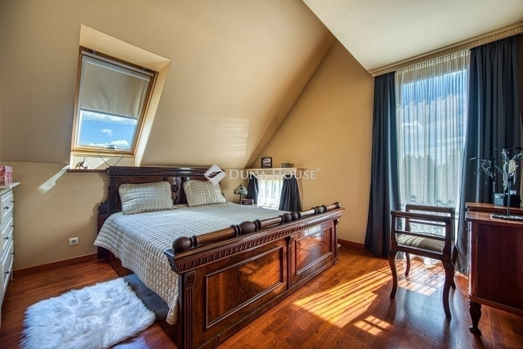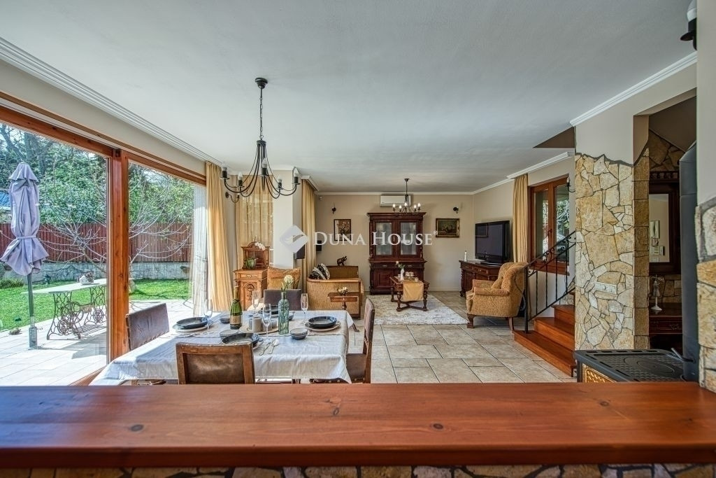 GYÖNYÖRŰ, 5 SZOBÁS CSALÁDI HÁZ ELADÓ SZENTENDRÉN!Eladásra kínálunk Szentendre egyik legkedveltebb, zöldövezeti részén egy igényesen kialakított, napfényes családi házat, egy forgalommentes, nyugodt zsákutcában.Az ingatlan összesen 210 m² hasznos alapterületű, egy 540 m²-es telken helyezkedik el, három lakószinttel és teljes alápincézéssel.A pinceszinten található a kétállásos garázs, valamint egy lakófunkcióval is rendelkező rész, amely akár önálló lakrészként is használható, így tökéletes választás többgenerációs családok számára.A ház fűtéséről gázkazán, padlófűtés (a nappaliban és a pinceszinten), valamint hűtő-fűtő klíma és kandalló gondoskodik, ami energiatakarékos működést és alacsony rezsiköltséget biztosít.Helyiségek elosztása:Földszint: tágas, világos nappali kertkapcsolattal, étkező, konyha, vendég WCEmelet: 3 különnyíló hálószoba, fürdőszobaTetőtér: egy különálló szoba csodás panorámávalPince: kétállásos garázs, gépészeti helyiségek, külön lakrészAz ingatlan ideális választás nagycsaládosok vagy többgenerációs otthon keresők számára egyaránt.A ház bármikor rugalmasan megtekinthető akár hétköznap, akár hétvégén!